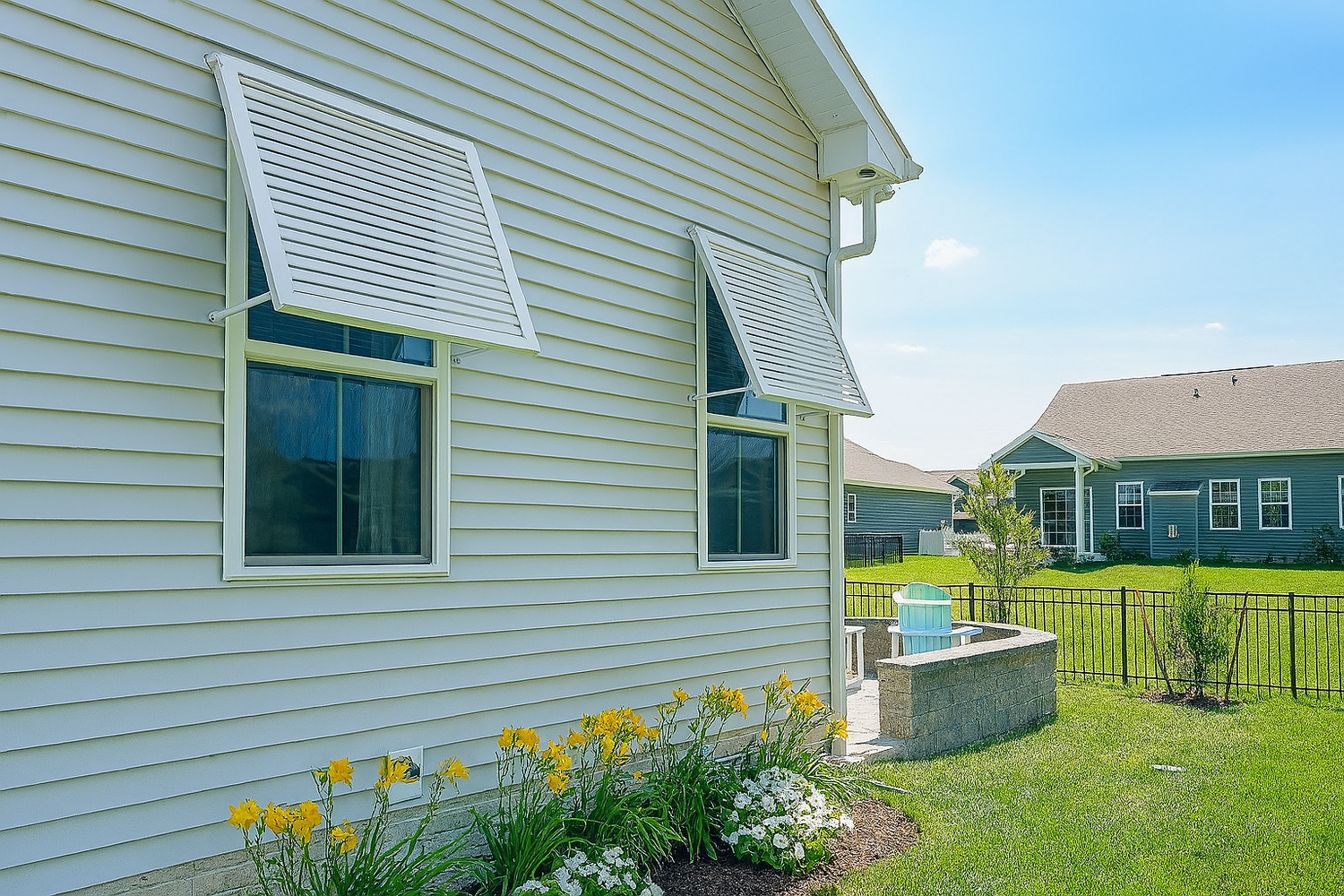 Bahama shutters are exterior window shades designed with angled slats (also called louvers) that are mounted above a window or opening and extend outward at a downward angle. This design provides effective shade and sun protection while still allowing for airflow and natural light. In addition to their practical benefits, Bahama shutters also add a stylish, tropical-inspired look to any home, patio, or business.